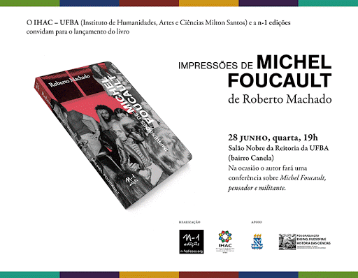 Acontece nesta quarta-feira, 28/06, às 19h, no Salão Nobre da Reitoria da UFBA, a conferência será ministrada pelo professor Roberto Machado (UFRJ) com o tema “Michel Foucault, pensador e militante”. A conferência ocorrerá junto com o lançamento do novo livro de Roberto “Impressões de Michel Foucault”, editado pela N-1 Editora.
